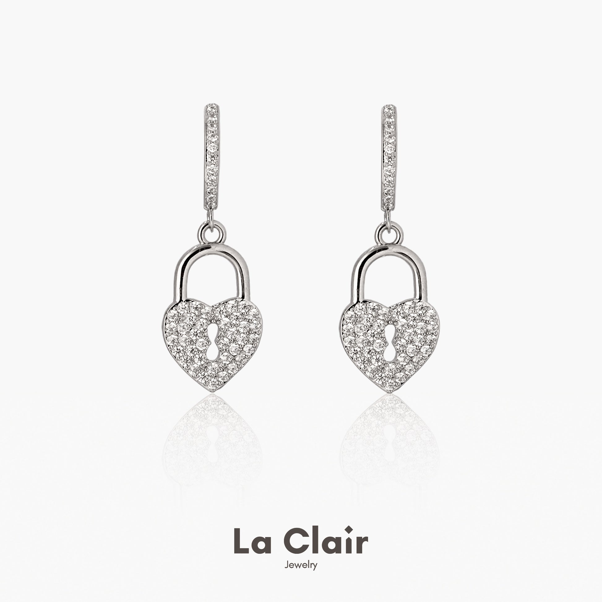 These stunning earrings feature a classic silver hoop design, seamlessly blending with a heart-shaped pendant that dangles gracefully below. The heart is beautifully encrusted with dazzling white zirconia stones, adding a brilliant sparkle to every turn.